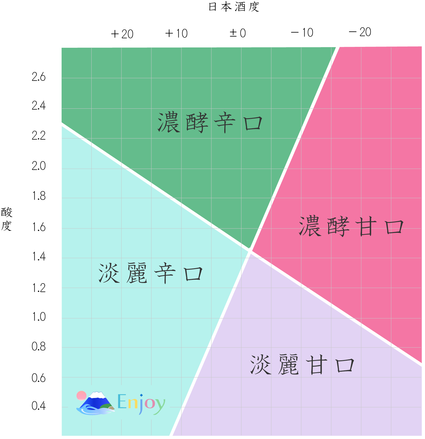 また、日本酒度と酸度のバランスよって甘辛の感じ方は異なります。